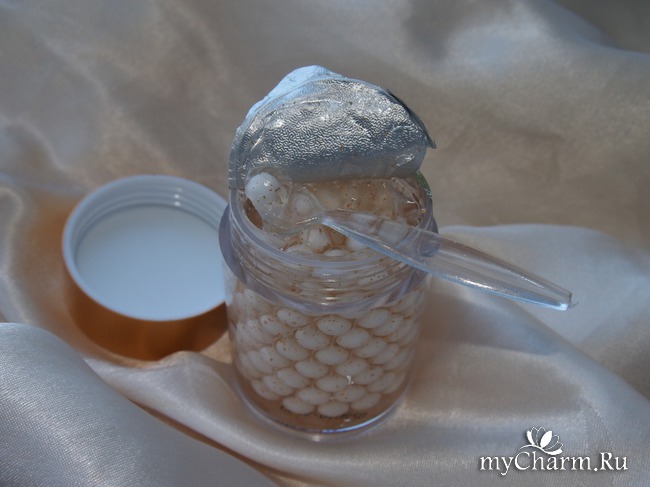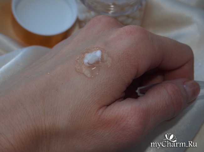 Как я уже говорила выше, крем оригинально сделан. В 58 граммах содержится несколько десятков, а может и сотен шариков крема, объятых гелевой текстурой. Необычно, но очень удобно при использовании.