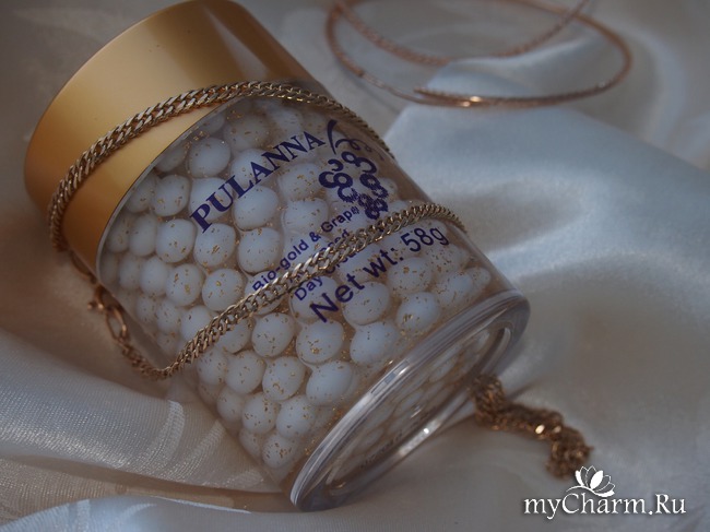 3) Раньше я видела увлажнение от работы средств, если можно так сказать. Дневной крем Pullana действует безукоризненно. Никаких ощущений стянутости, сухости нет. Даже мелкие морщинки («эмоциональные заломы») тут же разглаживаются, наполняясь влагой. Я читала, что именно из-за недостатка увлажнения кожа становится дряблой, морщинистой и старой. Крем наношу в количестве 2-х горошинок на кожу лица, шеи и затрагиваю декольте. Каждый видимый участок нужно «обнять» золотым средством.