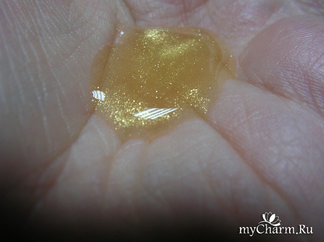 Что поразило меня при первом применении – это потрясающий золотой цвет шампуня. Переливающиеся золотистые вкрапления напоминают глиттер, добавленный в средство. Это действительно потрясает своей необычностью. И безусловно радуют глаз.