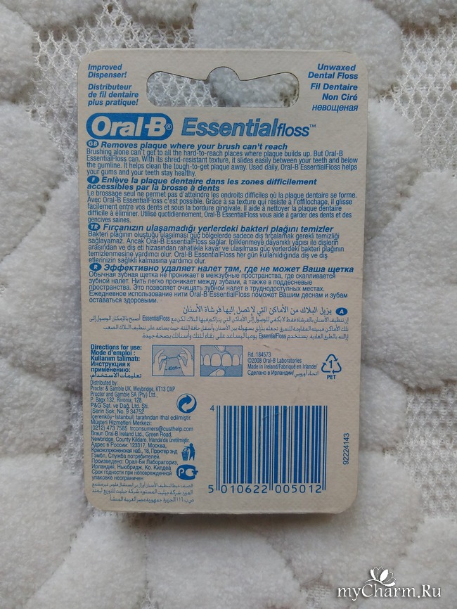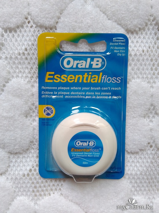 Зубных нитей в продаже множество, самых разных брендов. Я даю предпочтение продуктам Oral-B – по той причине, что они меня еще никогда не подводили. Oral-B Essential floss – одна из самых доступных и популярных в линейке зубных нитей этого бренда.