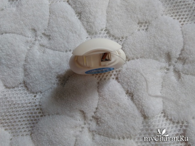 Футляр имеет небольшое лезвие, помогающее без труда отделить нить необходимой длины. Флосс белого цвета, не имеет никакого аромата. Поверхность нити ровная, поэтому удобное скольжение между зубами обеспечено. Остатки пищи и налет с помощью Oral-B Essential floss убираются с межзубных щелей без раздражения десен и повреждения эмали, а сама нить не расползается при использовании. Промежутки между моими зубами маленький, и за счет своей тонкости Oral-B Essential floss помогает очистить даже самые труднодоступные места.