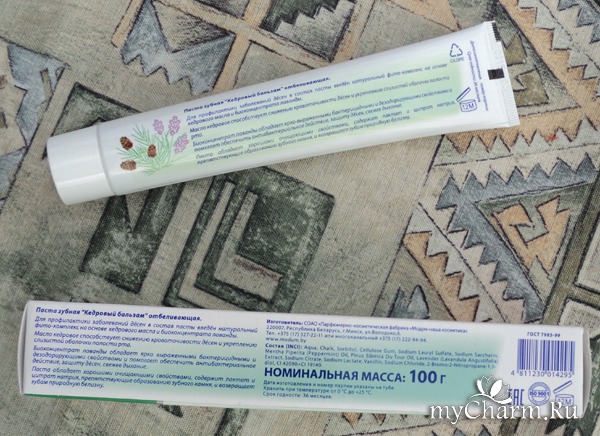 Производитель – белорусская компания «Модум». Изучила их сайт и поняла, что они профи в зубных пастах. В их портфолио несколько различных серий, в том числе такие известные как «Кедровый бальзам», «Фтородент», «Жемчуг».