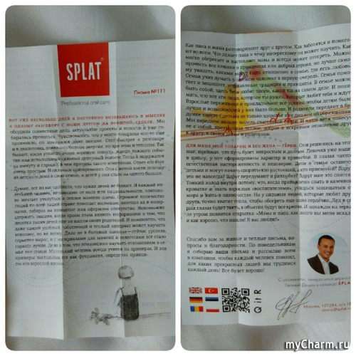 Такое дружеское отношение к потребителю не могло не умилить меня. К тому же, в письме указаны фактический и электронный адреса, если у меня будет желание ответить на него или написать о чем-то своем! А QR-код вывел меня на страницу других писем генерального директора Евгения Демина и команды Splat.
