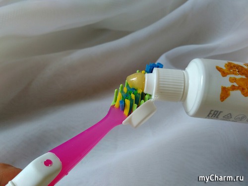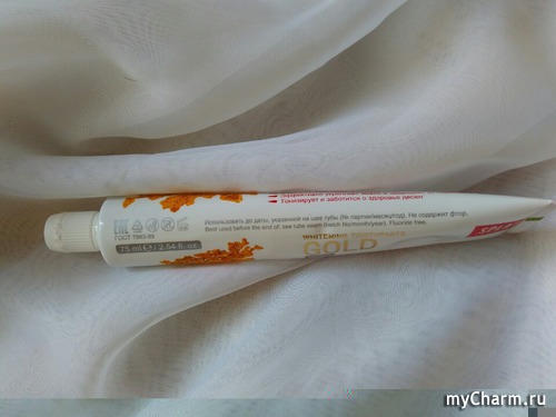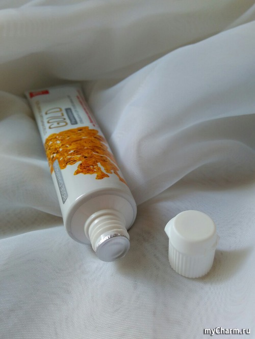 И, наконец, демонстрирую вам саму зубную пасту! Она такая золотисто-бриллиантовая, что у меня в голове сразу стало крутиться: «Лучшие друзья девушек – это бриллианты…». Вот так роскошь!