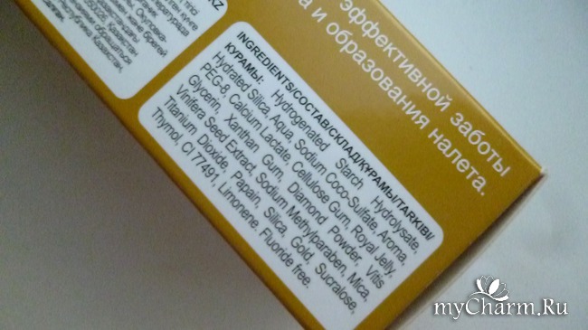 Думаю, излишне вдаваться в подробности состава и описывать возвышенные заявленные свойства зубной пасты, тем более, что вся информация подробно указана на упаковке. Стоит отметить, что в составе отсутствует фтор.