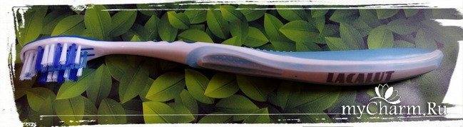 Пару слов о вложенном «Подарке» - это чудо!!! Я влюбилась в эту щёточку с самого первого раза применения. У неё, кстати, и название есть: Lacalut Duo Clean. У щётки очень удобная ручка эргономичной формы с мягкой резиновой накладкой: хорошо лежит в руке, не скользит. Удлинённая щетинка средней жёсткости для массажа дёсен. Щетинки на конце щётки повыше и заострены, что позволяет без труда чистить за зубами мудрости.