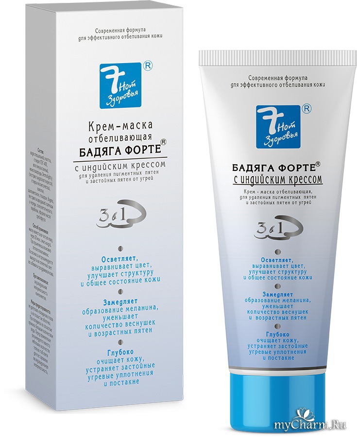 myCharm.Ru → 7 нот здоровья Крем-маска отбеливающая «БАДЯГА ФОРТЕ» с индийским крессом