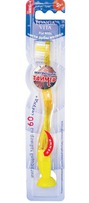 Детская зубная щетка со встроеным мигающим таймером сделает чистку зубов увлекальной и интересной. Таймер расчитан на 60 секунд, столько времени нужно для чистки одного ряда зубов. Мягкие щетинки не повредят десна и хорошо очистят зубки. На щетке есть щетинки двух цветов. Красные щетинки показывают сколько нужно пасты на одно применение.
