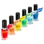 Лаки имеют яркую палитру и на этом все достоинства заканчиваются. В один слой лак прокрашивает плохо. Держится на ногтях 1-2 дня. Имеет сильный химический запах.