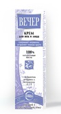 Таким кремом пользовалась еще моя мама, и я думала, что крем этот - прошлый век... Ведь сейчас столько дорогих, в красивых баночках со звучными названиями. Как-то встретилась с молодой особой, которой на вид дала бы лет 28. Оказалось, что ей - 43! Разговорились, и она поведала, что еще в молодости косметолог посоветовала ей постоянно пользоваться кремом "Вечер". Теперь и у меня этот крем - любимый. Кстати, зимой я им пользуюсь как дневным, но, конечно же, наношу его не менее, чем за 2 часа до выхода из дома и остатки сниманию косметической салфеткой