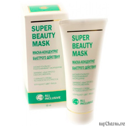 Маска-концентрат быстрого действия Супер Бьюти Маск от Олл Инклюзив Рейтинг: 0.0 Отзывов пока нет. Напишите первый! Рекомендован для тех, кому за 35. Для всех типов кожи. Бренд: All Inclusive