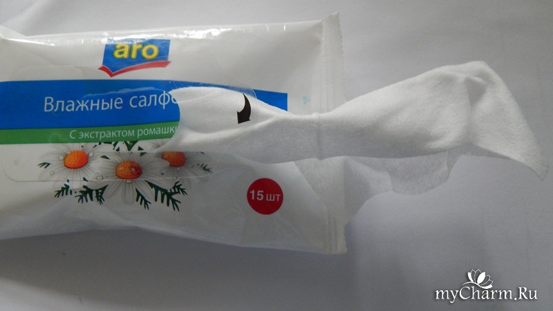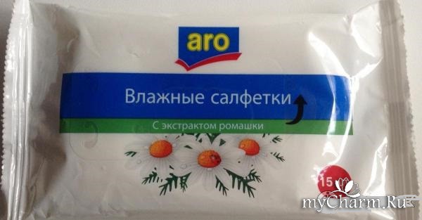При очередной покупке влажных салфеток остановилась на Aro с экстрактом ромашки.