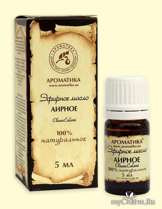 Получают из корневищ аира обыкновенного. Аромат: сильный теплый, древесно-пряный со своеобразной камфорной нотой. Действие: пртивовоспалительное, бронхолитическое, спазмолитическое, антиоксидантное. Применяется: при бронхитах, неврастении, язвенной болезни желудка и 12-перстной кишки, гингивитах, стоматитах, трудно заживающих ранах, для укрепления волос и профилактики перхоти...
