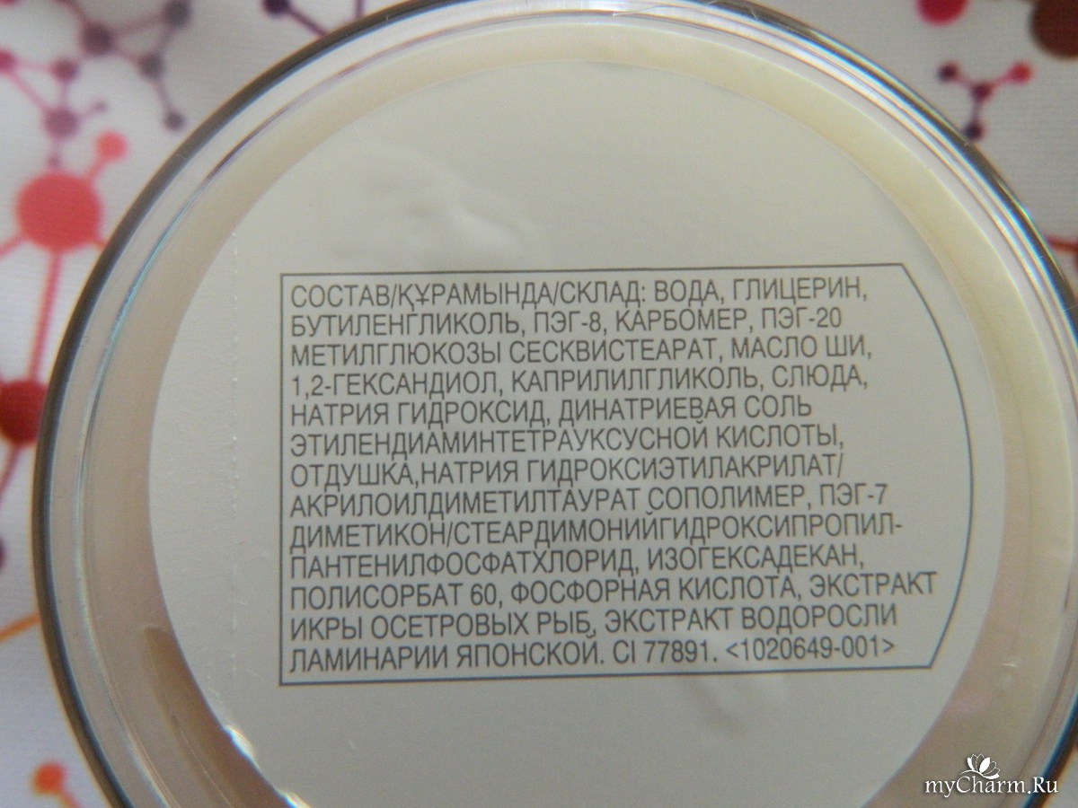 Когда открыла гель, была просто шокировано: средство перламутровое, розовое, переливающееся и мерцающее. Гелеобразное и плотное. Ощущения при использовании геля приятными не назовёшь: гель липкий, что вызывает некий дискомфорт, абсолютно не впитывается даже по прошествии длительного времени. Когда я решила снять его при помощи ватного диска, на диске оказались следы грязи, хотя кожу я предварительно очищала. Состав тоже не внушает доверия: обещанный экстракт чёрной икры - в мизерных количествах, а вот "химии", в том числе, и вредной для кожи и здоровья, - хоть отбавляй.
