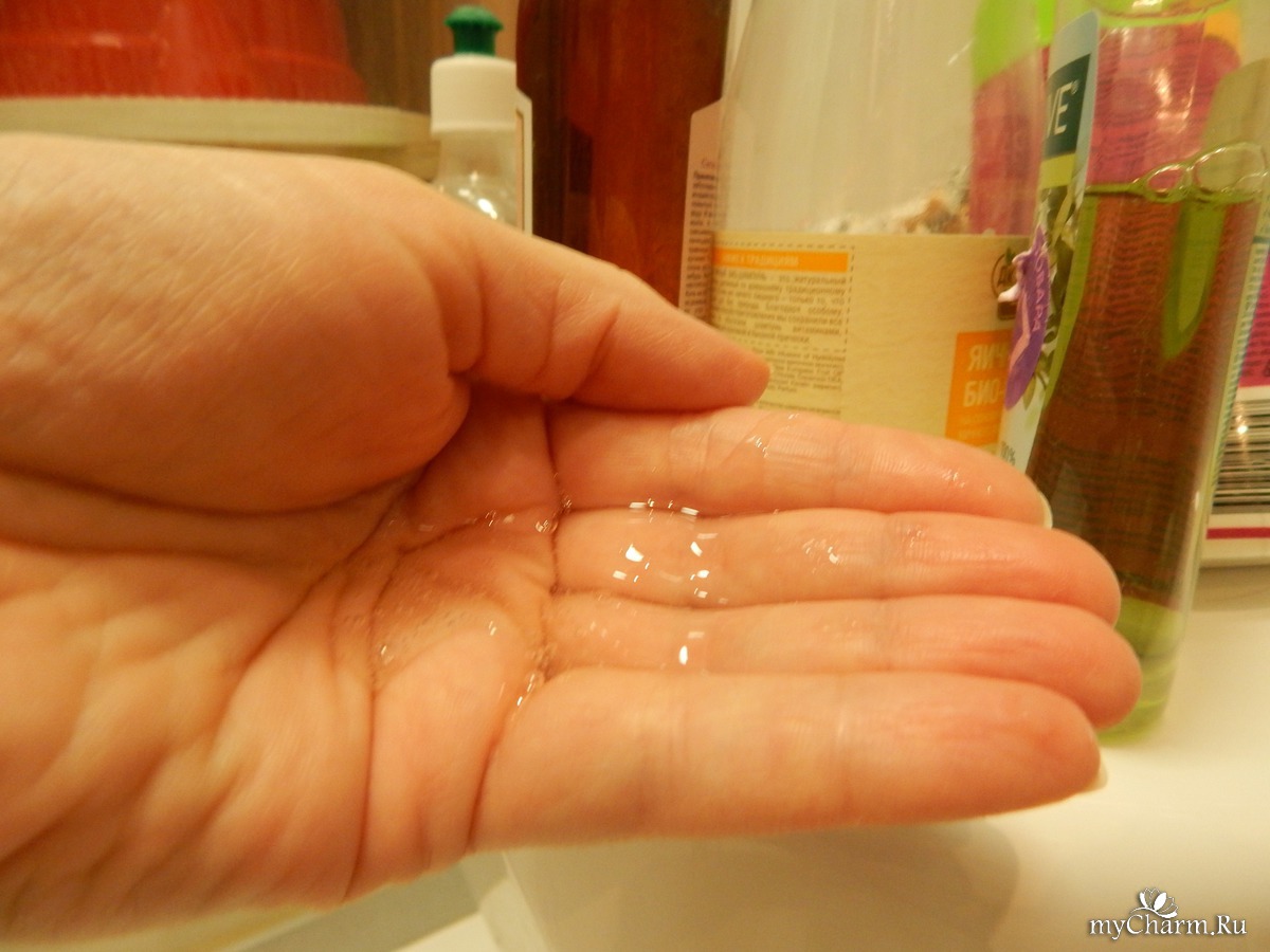 гель абсолютно прозрачный, нет красителей, есть дозатор, легкий и нежный запах