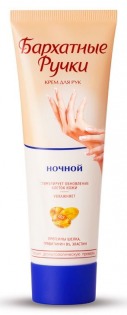 Не первый крем этой торговой марки, который я использовала. Хорошо, что додумались выпустить крем с таким названием "ночной", чтоб привлекал аудиторию, типа меня - я мажу руки в основном только перед сном, а в остальное время забываю или некогда. Психологически использовать такой крем комфортно, так как внушаешь себе, что крем "ночной", раз так называется, ночью и сделает натруженным ручкам все, что нужно для их хорошего вида. Вообще, как и предыдущие кремы Бархатных ручек, прекрасно смягчает и обладает приятным ароматом.