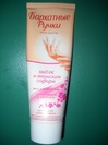 Этот крем был не первый из "Бархатных ручек", которым я пользовалась. Мне вообще нравятся кремы данной марки. Данный крем приятно пахнет, даже очень приятно. Он мягкий, быстро впитывается. Кожа рук после использования крема такая мягкая, нежная.