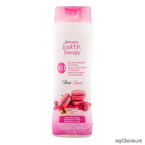 Belcam / Гель для душа, пена для ванны, шампунь для волос-3 в 1 Bath Therapy Paris Sweets Body Wach, Bubble bath and Sampoo 3 in 1 "Rhubarb&Rose"