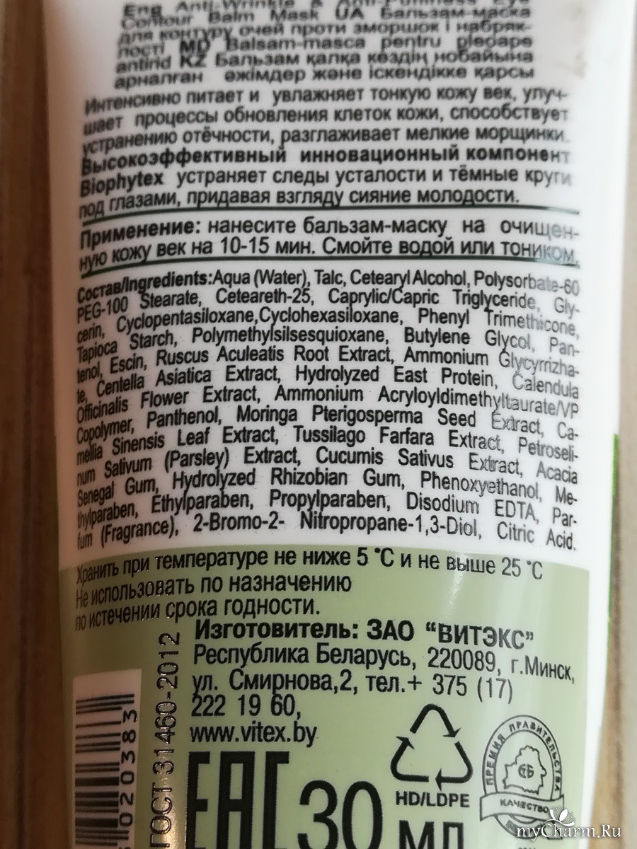 myCharm.Ru → BIТЭКС Бальзам-маска для контура глаз против морщин и отечности