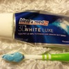 Паста голубая с белыми полосочками - выглядит заманчиво. Аромат и вкус её можно оценить на твёрдую "пятёрку", поскольку каждая процедура чистки зубов проходит на "ура". Очищает замечательно, освежает тоже отлично. С ней тёмные пятна с эмали начинают удаляться. Не через 7 дней, конечно, как заявляет производитель, а намного позже, дней через 20, но всё же... Она не отбеливает стопроцентно, но процесс очевиден. Единственное, что смущает, - состав, в котором не все компоненты полезны.