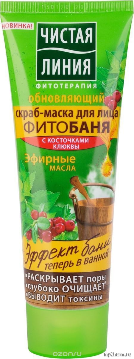myCharm.Ru → Чистая Линия Фитотерапия обновляющий скраб-маска для лица "Фитобаня" с косточками клюквы