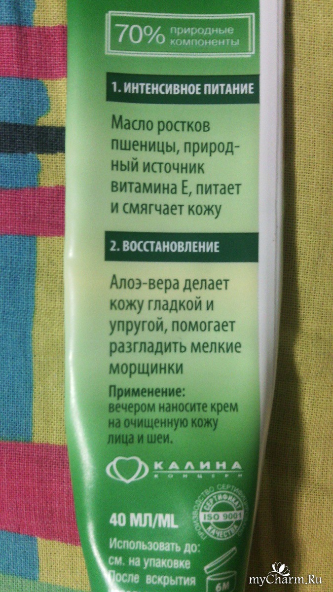 Купила крем из-за того, что в составе алое-вера и ростки пшеницы. Просто покупала раньше кремы с таким составом других фирм специально для зимнего времени. Но, пока на улице было максимум -5 градусов, крем помогал, а вот при большем холоде -увы. Разочарована.