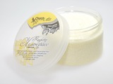 Состав: сахар, натуральный мёд, глицерин, растительные масла (ши, какао, льна, виноградной косточки, миндаля), воск сои, комплекс фруктовых кислот (гликолевой, яблочной, молочной, винной, лимонной) и их солей, масляный экстракт ванили, эфирное масло лемонграсса, СО2 экстракты (ламинарии, фукуса, крапивы, корня одуванчика и аира), витамины А и Е.