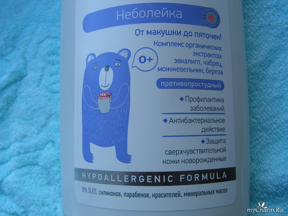 Необычный гель для купания детей с самого рождения "Неболейка" является гипоалергенным, так как является натуральным средством для купания младенцев, не содержащим SLES, парабенов, силиконов, красителей, минеральных масел. Гель абсолютно прозрачный. Хорошо пенится. Имеет очень приятный аромат с доминирующими нотками можжевельника. Не щиплет глазки. Подходит для мытья волос и тела. А благодаря целебным компонентам из экстрактам лечебных трав обладает противопростудным, противовирусным и антибактериальным свойствами.