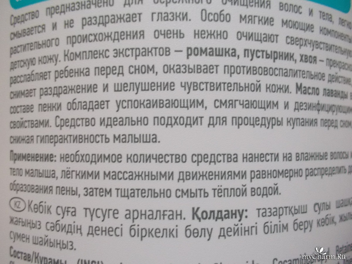 Пенка плохо пенится, но это единственный недостаток даного продукта! Чудесный состав, в котором действительно отсутствуют сульфаты, парабены, красители и другие не очень полезные вещества, что делает его прекрасным средством для купания даже младенцев! "Пенка" прекрасно очищает кожу, не вызывая сухости. Кроме того, в средстве содержатся натуральные растительные компоненты: масло лаванды, экстракты ромашки, хвои и пустырника. Прекрасное средство для детсткой гигиены!
