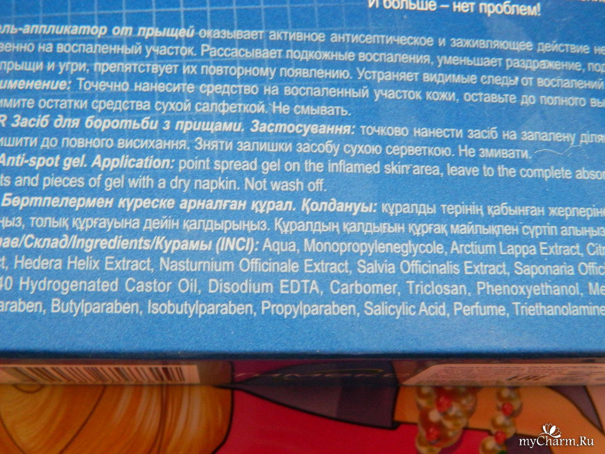 Отмечу удобный дозатор, пользоваться которым - одно удовольствие. Благодаря ему, гель можно нанести точечно, избегая попадания средства на другие участки кожи. Впитывается гель быстро, плёнки на коже не оставляет. На прыщи действует по-разному: рост одних подавляет, они становятся меньше и быстро (за день-два) исчезают, другим воспалениям он помогает созревать. Расходуется он очень экономно, стоит недорого. Есть у средства и довольно весомый минус - множество парабенов в составе. |