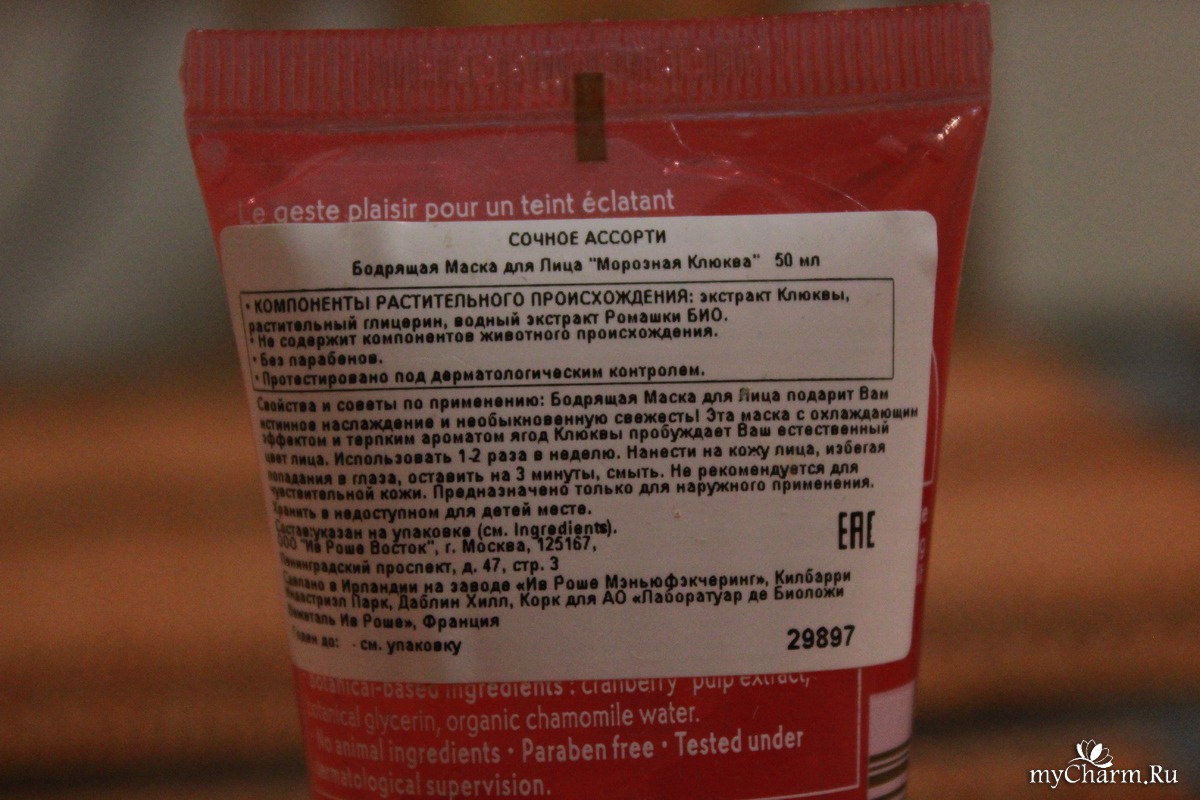 Соблазнила хорошая скидка и экстракт клюквы в составе. На деле же никакой морозной свежести и бодрящего эффекта не заметила. Самая обычная маска. Аромат своеобразный, немного приторный, но никак не клюквенный. Маска хорошо смывается, хотя консистенция густая, гелеобразная, довольно неплохо увлажняет кожу.