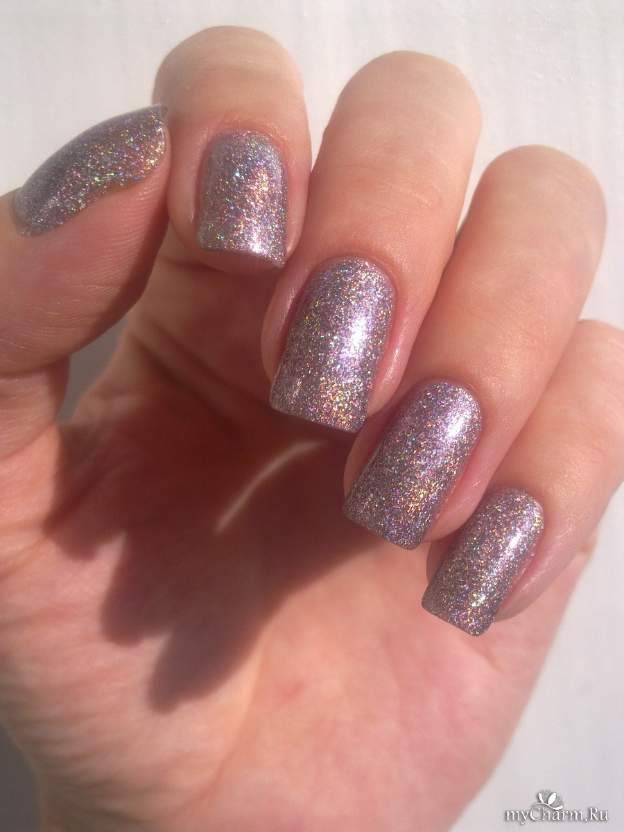 Состав: butylacetate, ethylacetate, BASE 12944 (nitroceliulose, isopropylalchohol, acrylates copolymer, stearaiconium hectorite, dybutylacetate), mica, titanium dioxide, tinoxide, polyester glitters, silica.