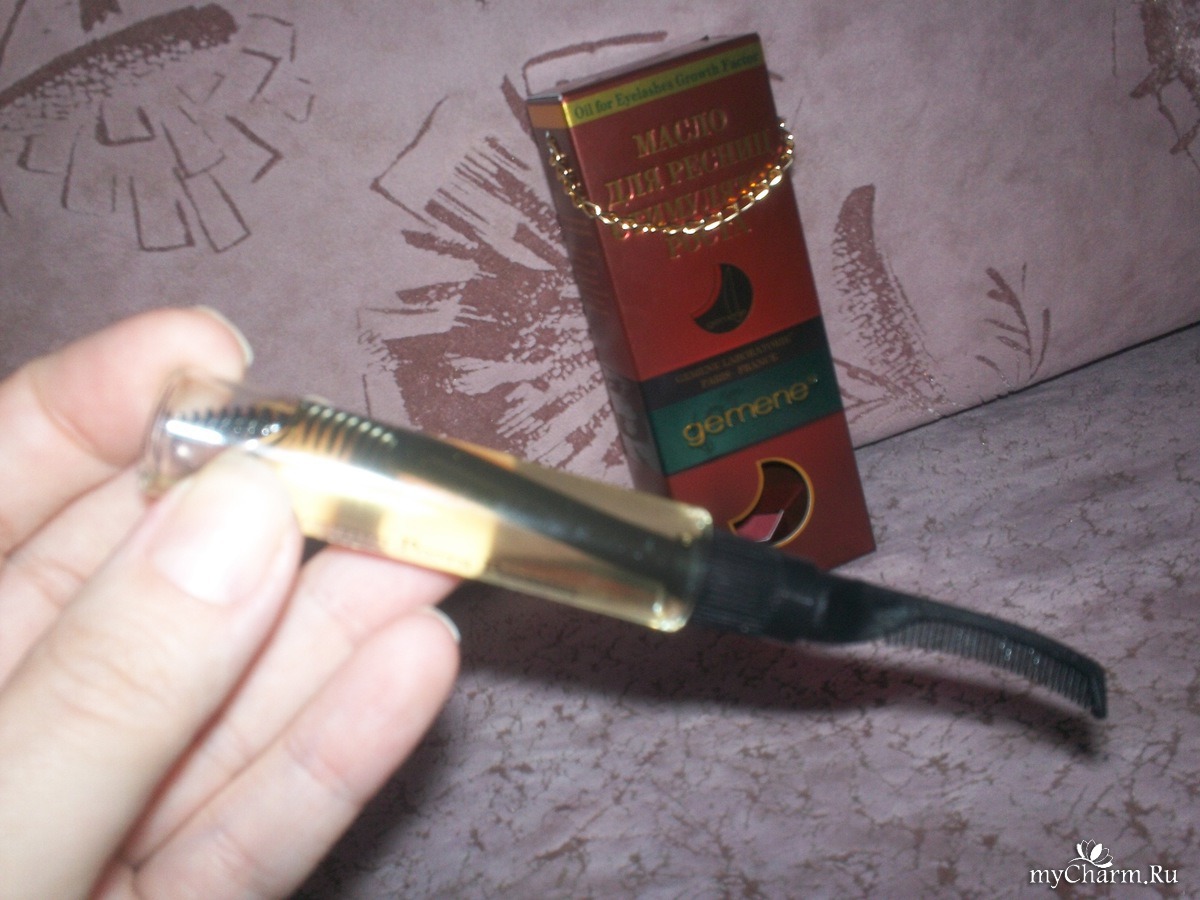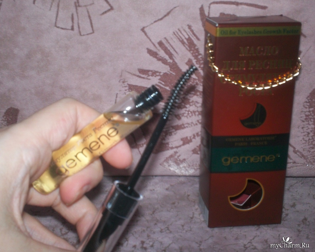 Какая женщина не мечтает о роскошных длинных ресницах? Наши реснички нуждаются в уходе не меньше всего остального и Масло для ресниц стимулятор роста от Gemene чудесным образом справляется с этой задачей! Оно обладает тонким, едва уловимым ароматом, входящих в его состав масел и имеет 100% натуральный состав, о чём подробно расписано прямо на упаковке, которая имеет очень изысканный дизайн и украшена золотой цепочкой для красоты и удобства хранения! Расходуется маслице очень экономно и просто в применении за счёт удобной кисточки, а прозрачная пластиковая ёмкость позволит контролировать расход и состояние средства! Цена этого средства, тоже весьма демократична, учитывая, что средства хватит очень надолго! Не скажу, что за неделю отрастила метровые ресницы, но то, что их состояние улучшается с каждым днём-это факт!