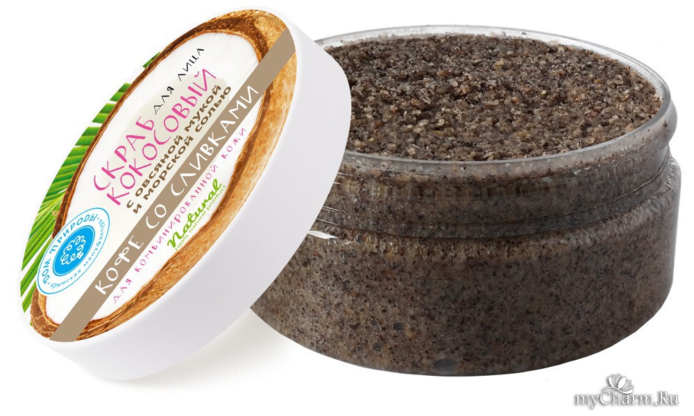 myCharm.Ru → Дом Природы Кокосовый скраб для лица “Кофе со сливками” с овсяной мукой и морской солью