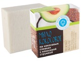 Состав: омыленные растительные масла (масло кокосовое, масло оливковое, масло касторовое), воск пчелиный, кокосовая стружка молотая, кислота олеиновая, масло авокадо, кокосовые сливки, витамин Е, экстракт кокоса, эфирное масло ванили.