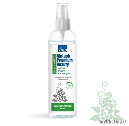 Состав: гидролат сосны, гидролат иссопа, гидролат календулы. Не содержит спирта и консервантов. Гидролаты Алуштинского эфиромасличного совхоз-завода производятся с использованием воды Чатыр-Дагской с источника Хачи- Iвулканического масива Чатыр-Даг.