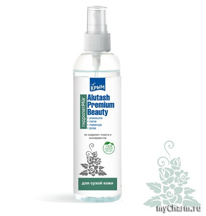Состав: идролат ромашки, гидролат липы, гидролат лаванды, гидролат розы. Не содержит спирта и консервантов. Гидрполаты Алуштинского эфиромасличного совхоз-завода производятся с использованием воды Чатыр-Дагской с источника Хачи-I вулканического масива Чатыр-Даг.