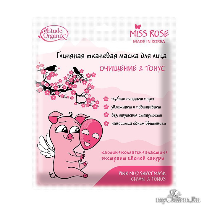myCharm.Ru → Etude Organix Miss Rose Глиняная тканевая маска для лица ОЧИЩЕНИЕ & ТОНУС