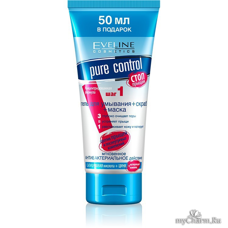 myCharm.Ru → Eveline Cosmetics Eveline Pure Control Гель для умывания+скраб+маска Стоп прыщам