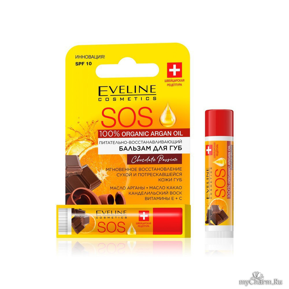 Eveline Cosmetics / Бальзам для губ Sos Argan Oil Chocolate Passion Spf 10
