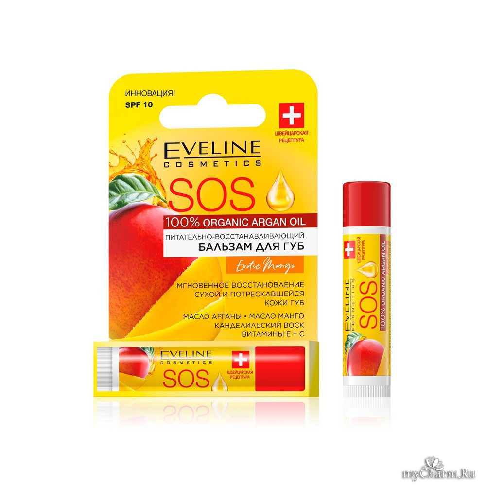 Eveline Cosmetics / Бальзам для губ Sos Argan Oil Exotic Mango Spf 10