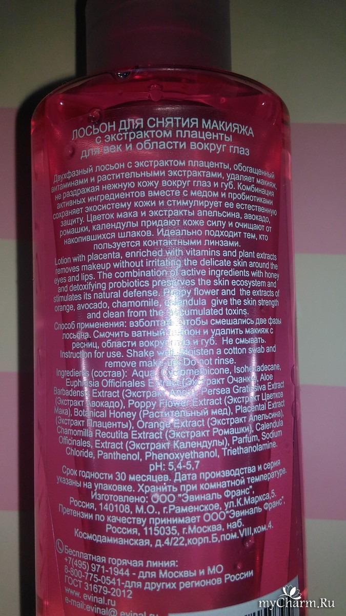 myCharm.Ru → Evinal Лосьон для снятия макияжа с экстрактом плаценты для век и области вокруг глаз