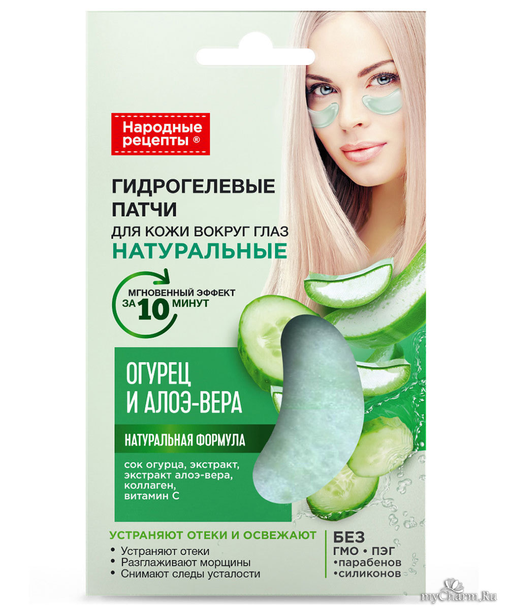 myCharm.Ru → Fitокосметик Фитокосметик «Народные рецепты» Натуральные гидрогелевые патчи для кожи вокруг глаз Огурец и алоэ вера серии Народные Рецепты