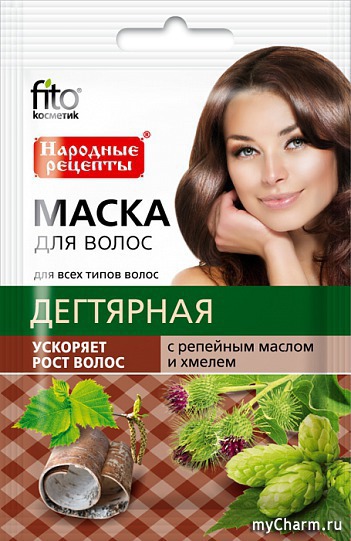 myCharm.Ru → Fitокосметик Натуральная маска для волос "Дегтярная с репейным маслом и хмелем" для ускорения роста волос