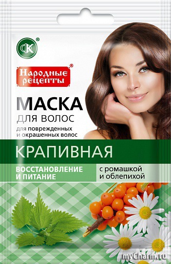 myCharm.Ru → Fitокосметик Натуральная маска для волос "Крапивная с ромашкой и облепихой" восстановление и питание.