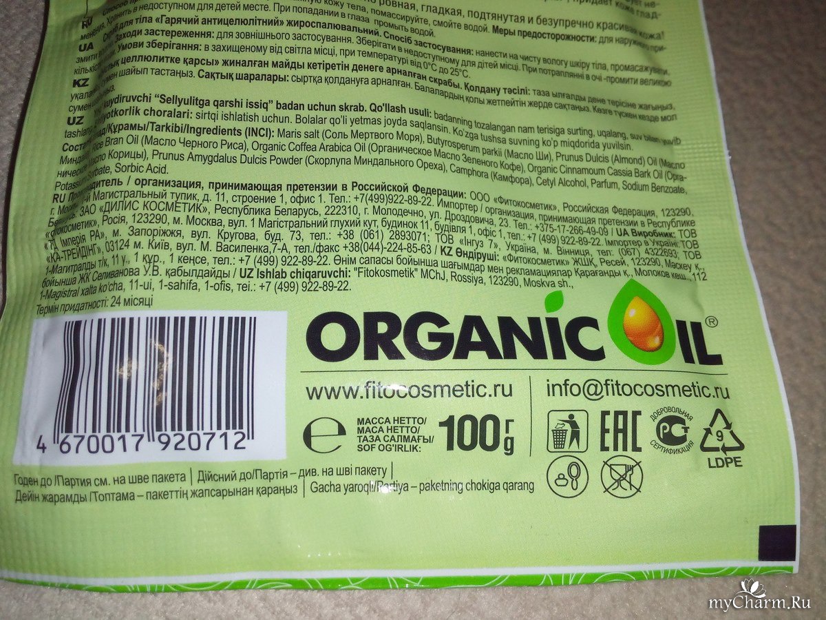 myCharm.Ru → Fitокосметик Скраб для тела ORGANIC OIL Горячий антицеллюлитный
