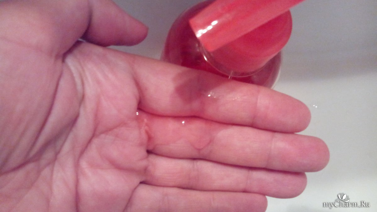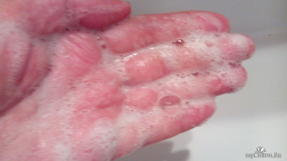 Гель имеет приятный сладковато-кислый запах, умеренно пенится, хорошо смывается.
