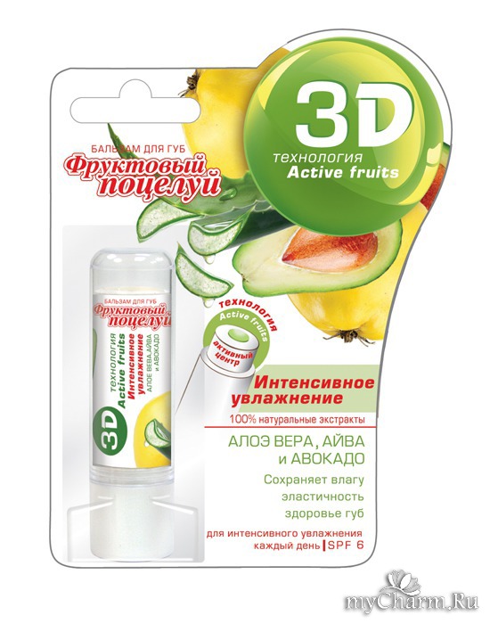 myCharm.Ru → Фруктовый поцелуй Бальзам для губ 3D: Интенсивное увлажнение "АЛОЭ ВЕРА, АЙВА и АВОКАДО"