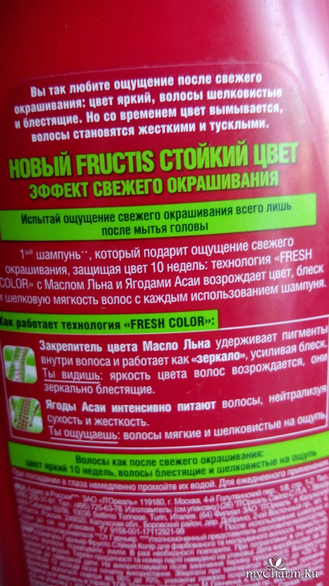 myCharm.Ru → GARNIER Fructis Стойкий Цвет Эффект свежего окрашивания Укрепляющий Шампунь