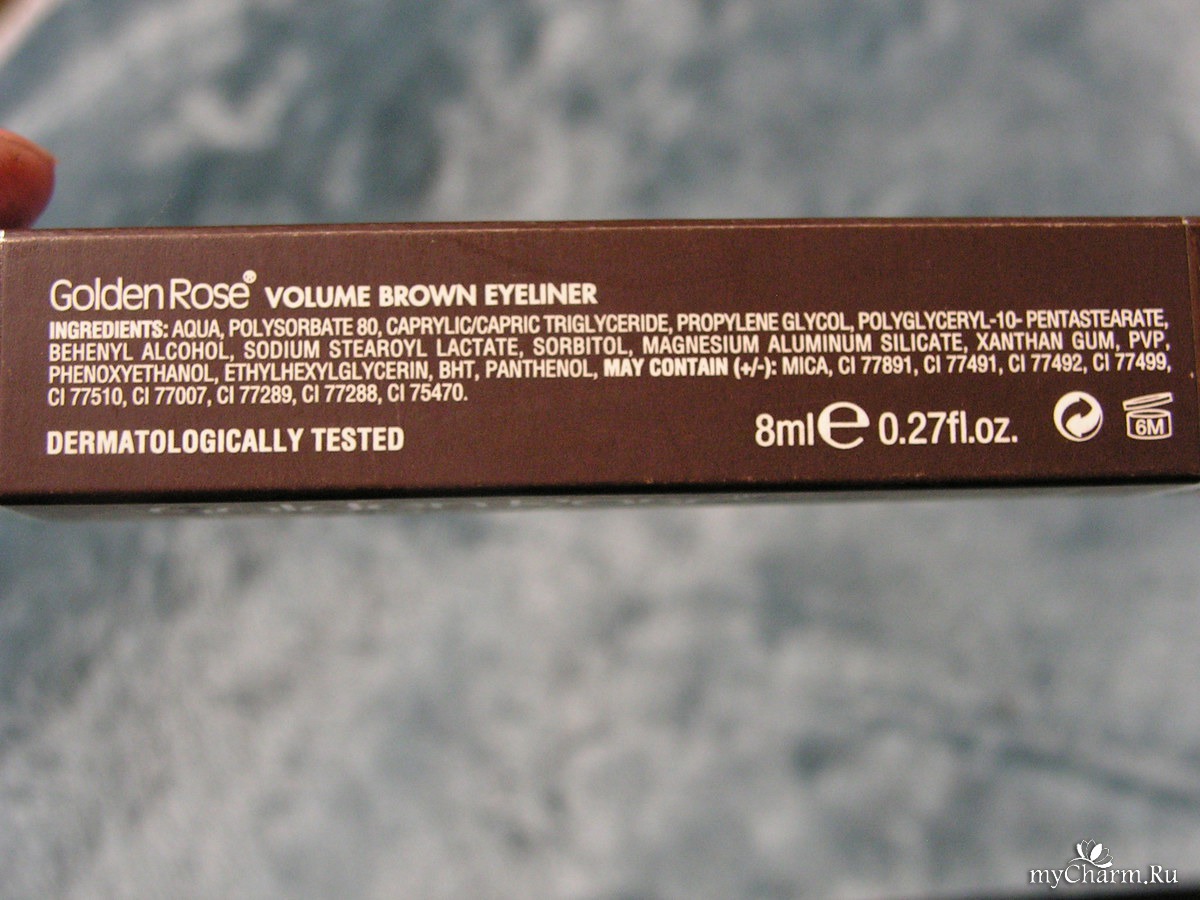 Она не растекается, держится в течении дня, но при этом легко смывается водой. С помощью тонкой и удобной кисточки можно нарисовать линию любой толщины. Имеется 4 вида цвета (черный, коричневый, голубой и серебристый) для создания разных образов. Подводка не вызывает аллергии и жжения в глазах. Качество подводки не портиться уже долгое время, поэтому я ее использую уже более 10 лет. |